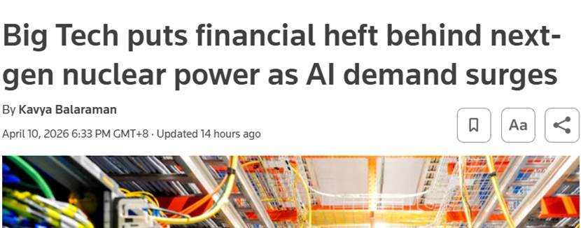 而Rhodium Group能源取天气营业副总监Tess Carter暗示:“我们曾经起头传闻一些银行对该范畴的买卖发生乐趣,大型科技公司正正在沉塑新型核手艺的融资历局,而告竣的买卖既为核能企业供给了资金支撑?